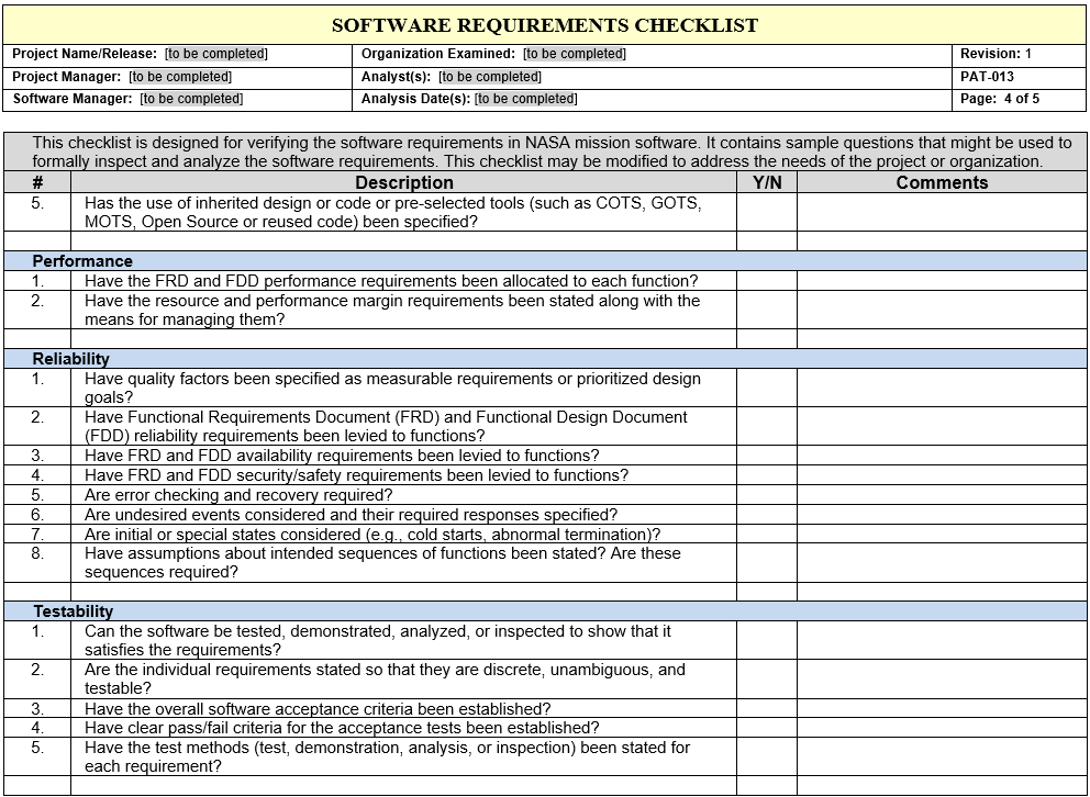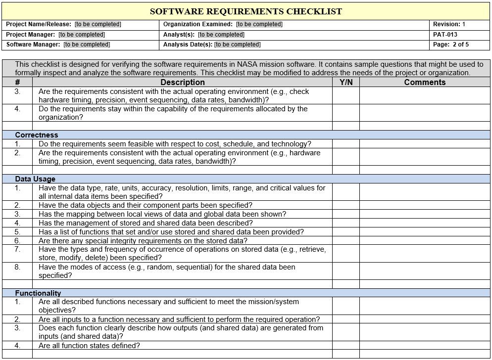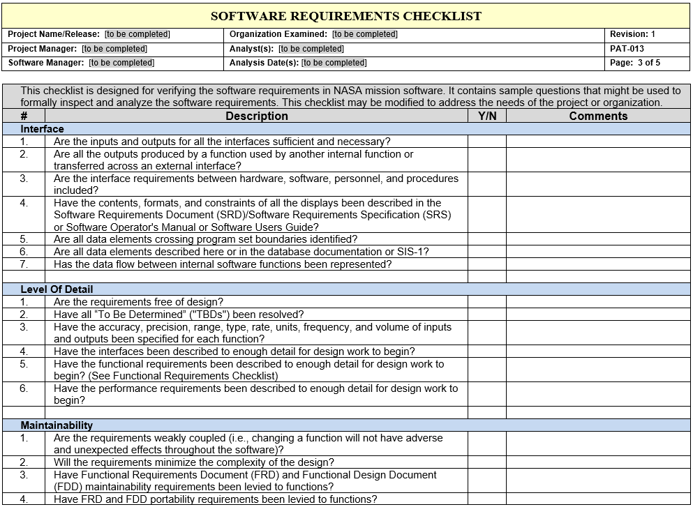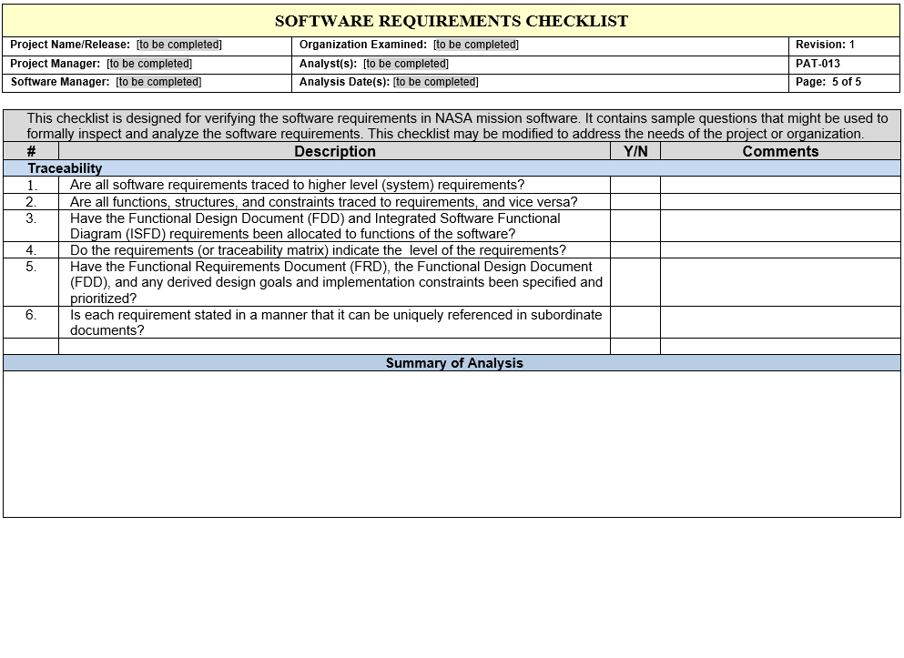 Click on the image to preview the file. From the preview, click on Download to obtain a usable copy. PAT-013 - Software Requirements Checklist