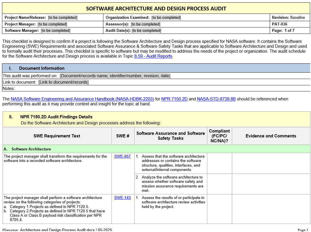 Click on the image to preview the file. From the preview, click on Download to obtain a usable copy. PAT-036 - Architecture and Design Process Audit