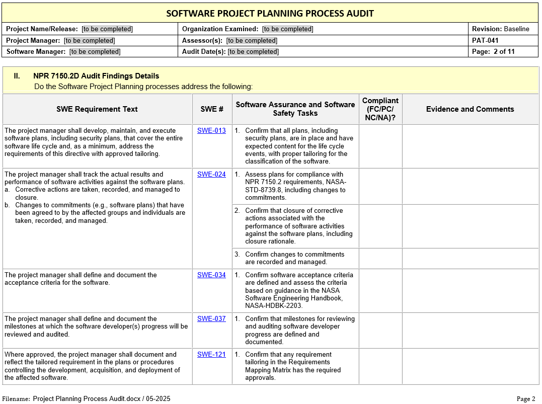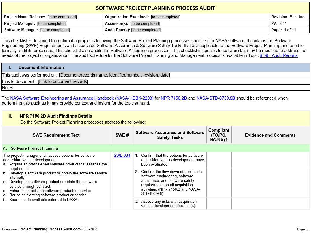 Click on the image to preview the file. From the preview, click on Download to obtain a usable copy. PAT-041 - Project Planning Process Audit