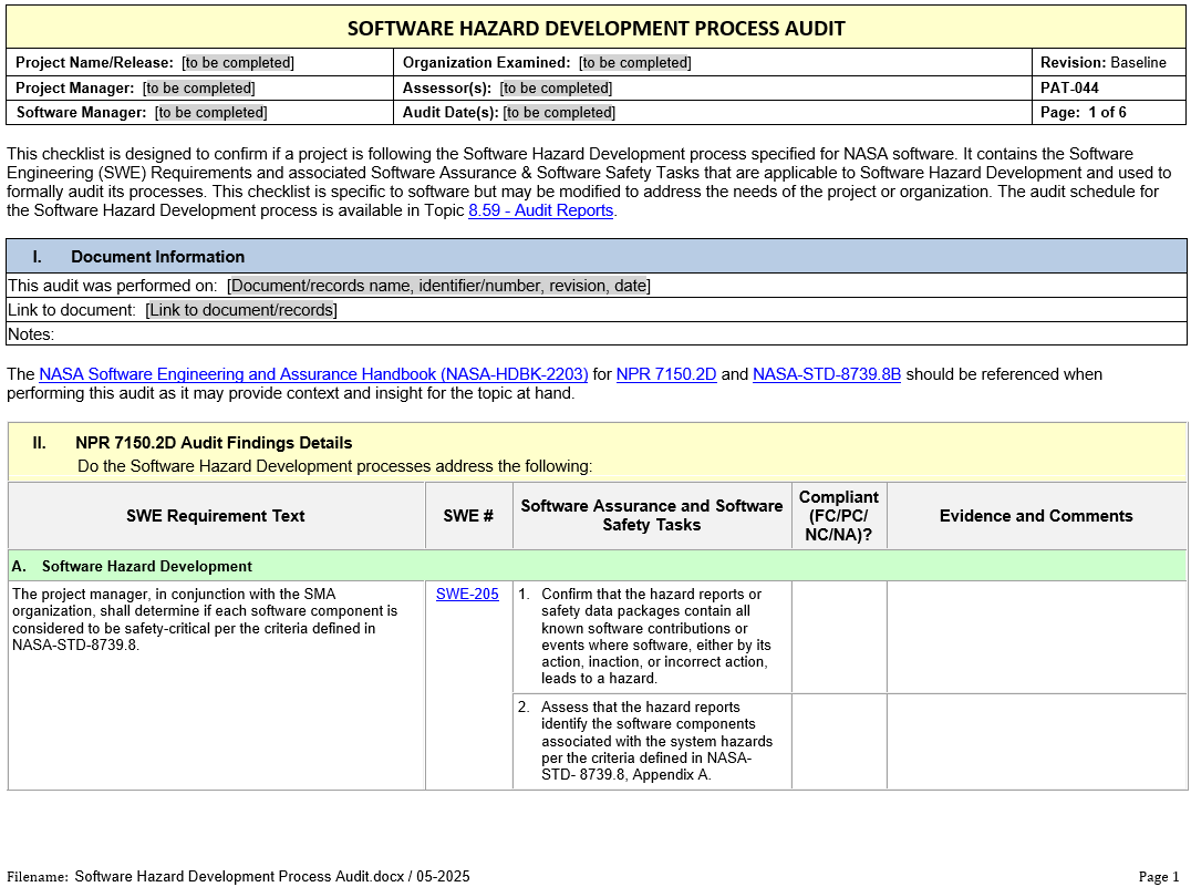 Click on the image to preview the file. From the preview, click on Download to obtain a usable copy. PAT-044 - Software Hazard Development Process Audit