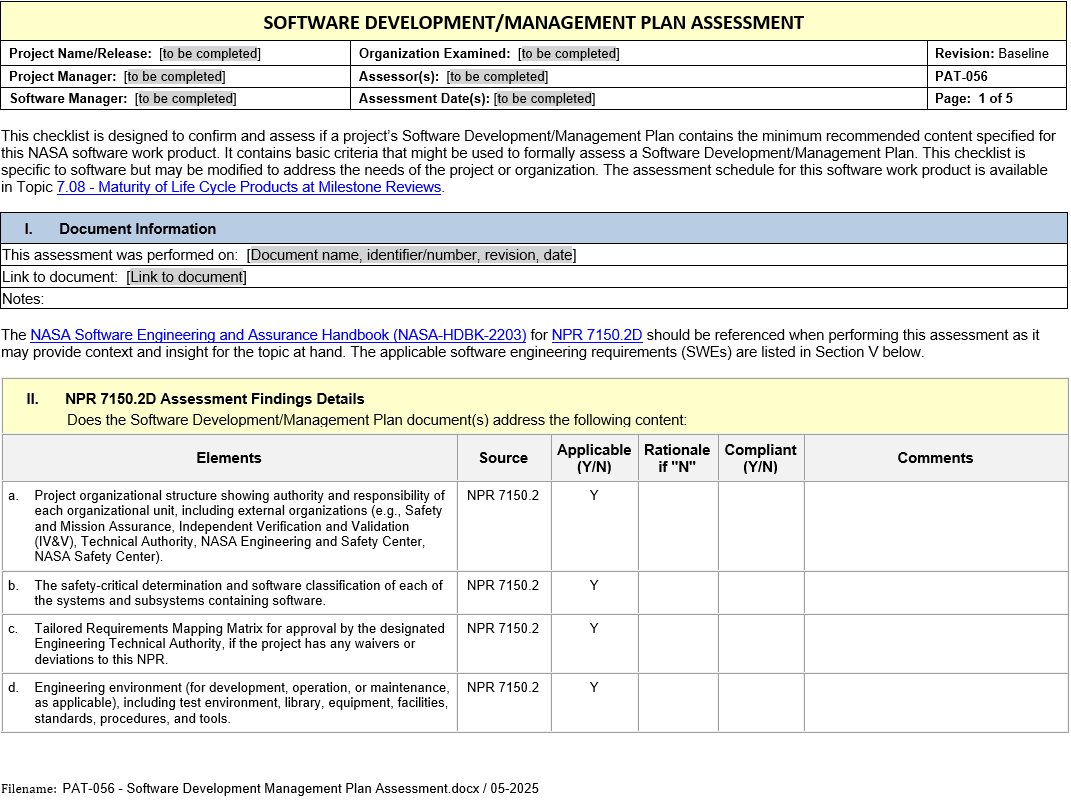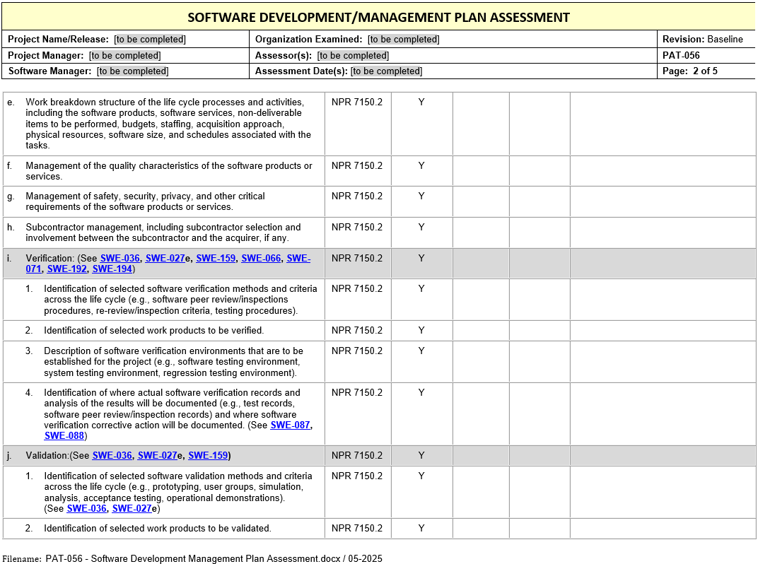 Click on the image to preview the file. From the preview, click on Download to obtain a usable copy. PAT-056 - Software Development Management Plan Assessment