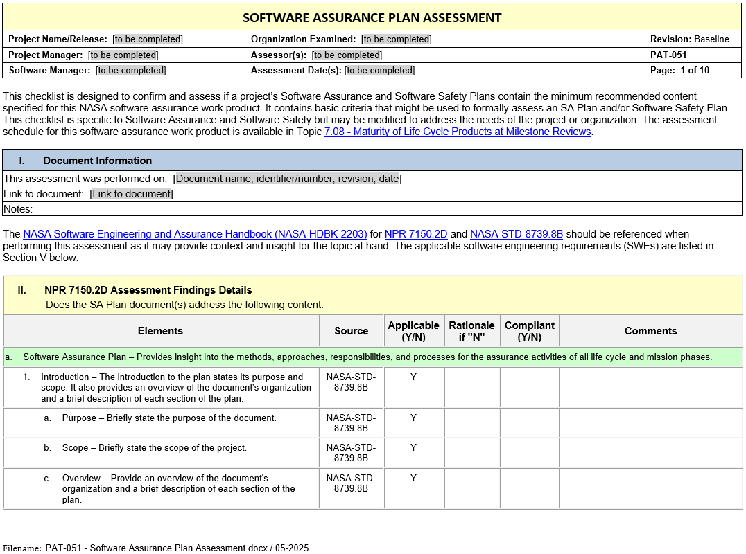 Microsoft Word Document PAT-051 - Software Assurance Plan Assessment.docx 52 kB CATHRYN SIMPSON May 30, 2025 11:42